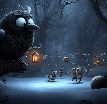 Der Park von Schnabelstadt liegt unter einer glitzernden Schneedecke – perfekt für unser erstes Winterfest. Mit funkelnden Glühwürmchen, tanzenden Schneeflocken und jeder Menge Lachen verwandeln wir die Nacht in ein kleines Wunder. Doch als plötzlich ein alter Rabe auftaucht und Stille verlangt, zeigt sich, dass manchmal die schönsten Feste dort entstehen, wo man sie am wenigsten erwartet. 💫 Was meinst du – kann ein mürrischer Rabe den Zauber des Winters spüren? Eine Gute-Nacht-Geschichte voller Licht, Lachen und dem warmen Gefühl echter Freundschaft.
