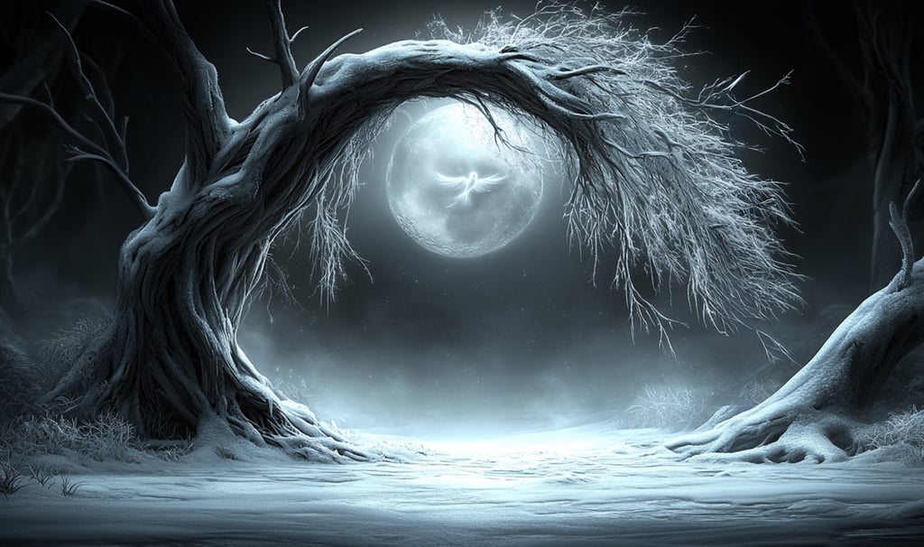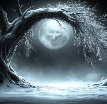 Über dem gefrorenen Bach glitzerte die Luft – und dort, wo der Mond das Eis berührte, funkelte es wie eine goldene Stimme.